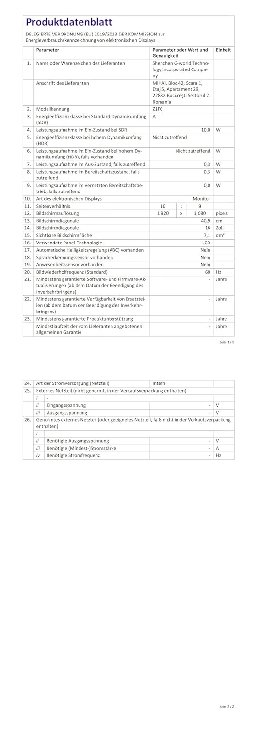 Arzopa Z1FC monitorius prekės pakuotėje rasite: